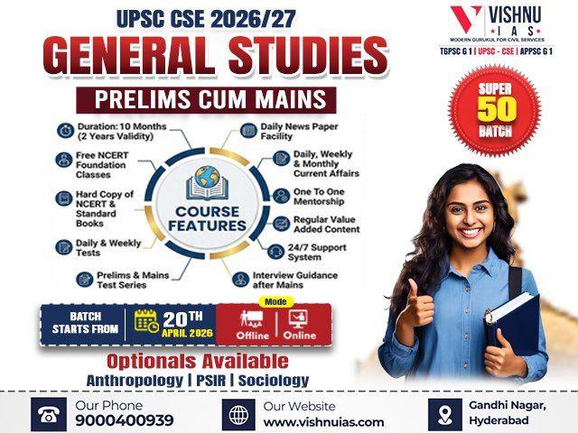 This is Basics to Intensive Focused Batch For UPSC 2026 Aspirants, With 2 Years Validity. Course Includes Live Classes(10 Months) + Recorded Lectures(2 Years) + Prelims Test Series + Mains Test Series + Interview Guidance Spanning Over 2 Years Our Principles: -HANDHOLD APPROACH -FOCUS ON AVERAGE STUDENT -TRUSTED & RELIABLE MENTORSHIP -RESPONSIBILITY -ACCOUNTABILITY